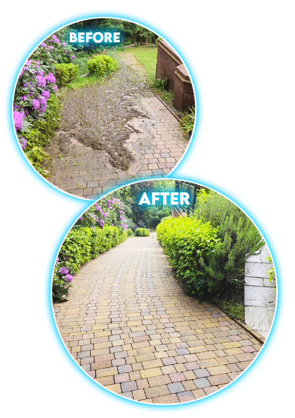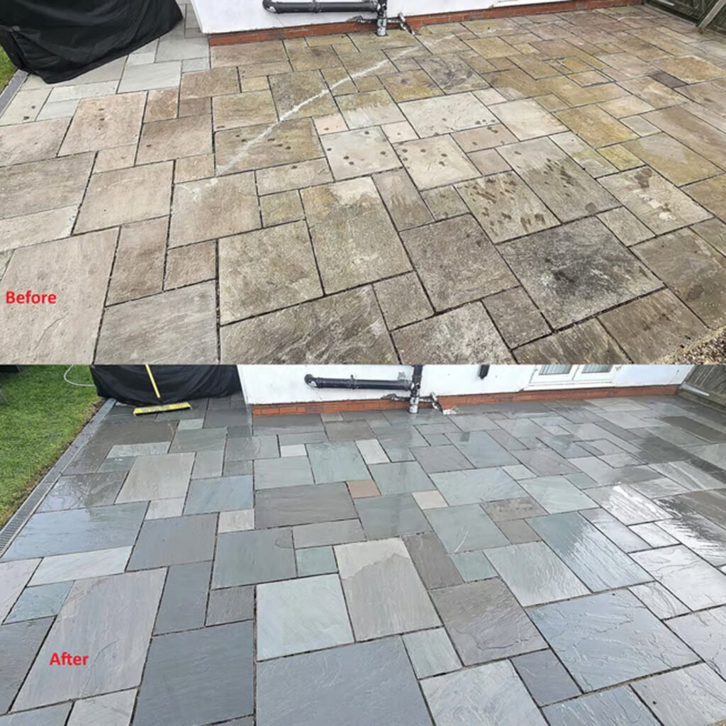 Our cleaning service removes dirt, algae, and grime, leaving surfaces safer, cleaner, and refreshed. For block paving, we can re-sand once dry—this may be completed on a separate day depending on weather.