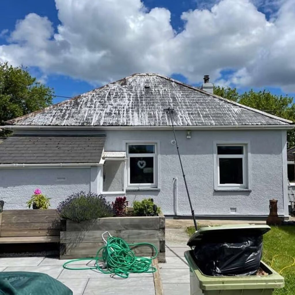 We can restore render or painted surfaces to their original appearance with our softwashing service. Using an extendable pole, we apply a professional biocide mix (40% or 50% DDAC depending on the job) to safely remove algae, mould, lichen, and grime.